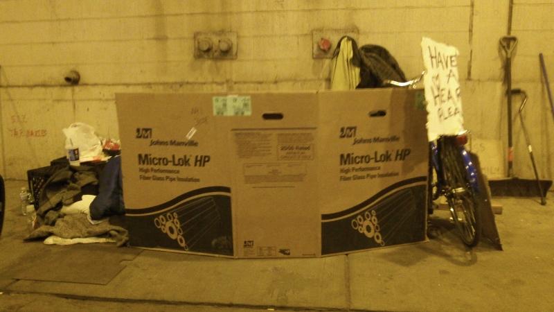 * Photo Below of a homeless person sleeping in a cardboard box under lower wacker drive in city of Chicago, IL. Photo taken in April 2017.