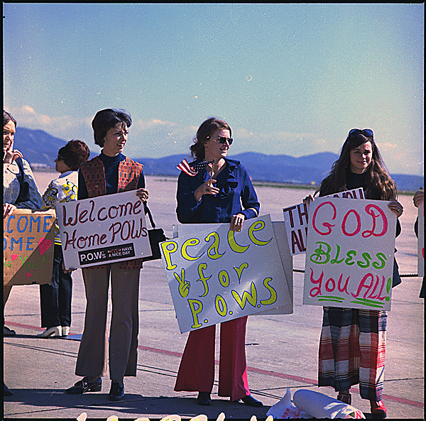 Photo (L) supporters for American P.O.W.S arriving home from the Vietnam War.