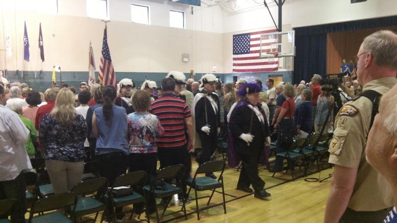 Photo Above: American Legion Color Guard preparing to march. In the photo to the right lookin gon are GCA volunteers, William (Billy) Gebel, Jr., with cap at his side, and LaTanya Gamblin.
